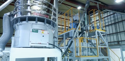 廃ガラスの再資源化を行う自社工場で、